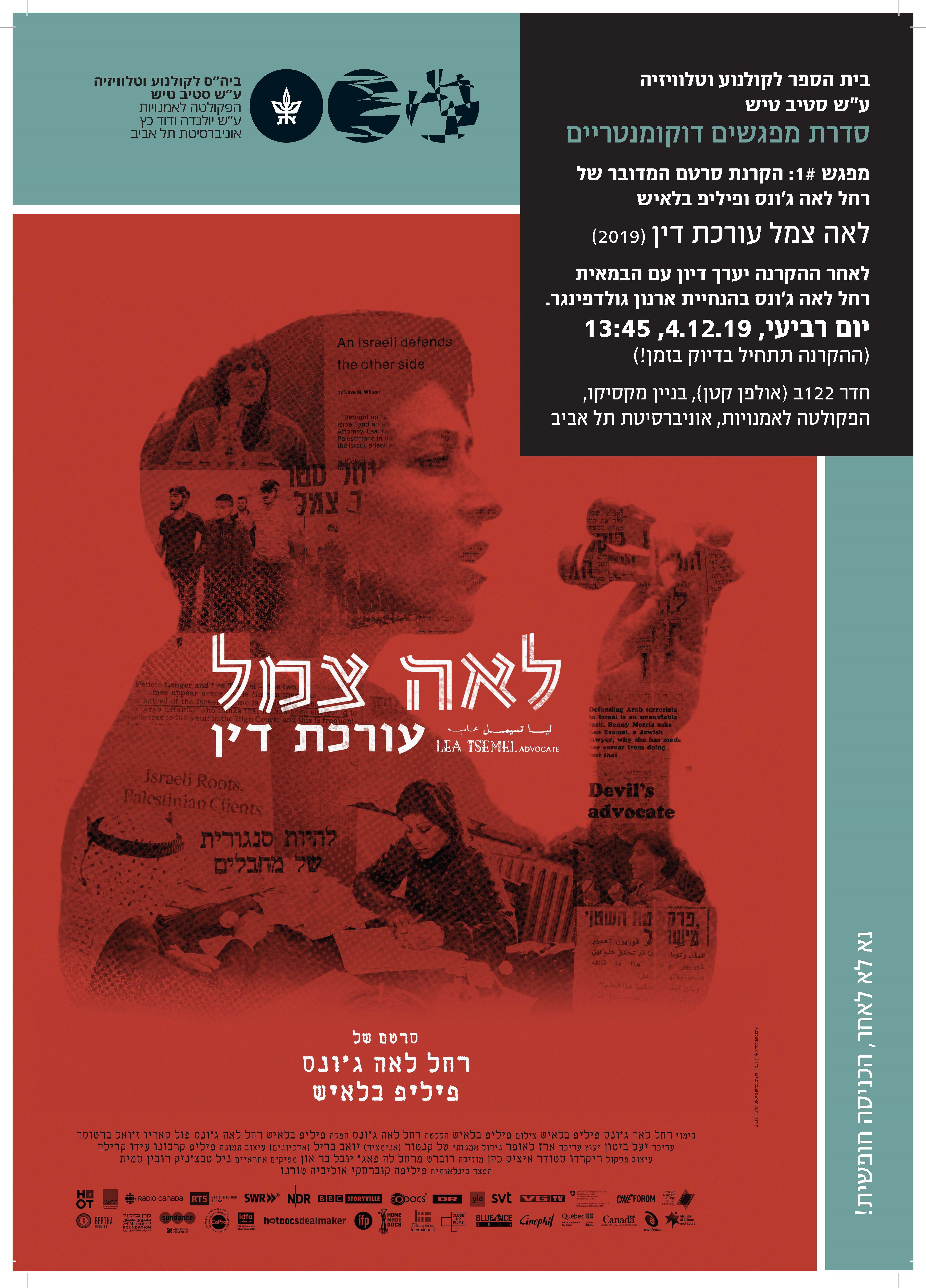 במפגש הראשון נקרין את סרטם המדובר של רחל לאה ג'ונס ופיליפ בלאיש "לאה צמל עורכת דין" (2019).